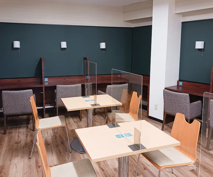 パウダールームや歯磨きスペース、喫煙室、充電用コンセント、Wi‑Fiなど設備が充実しています。無料で使えるティーサーバーも大好評!他ショップのスタッフとも気軽に話せる、リラックスできる憩いの場としてご利用ください。